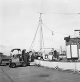 Godshantering med truck, CLARK i Åkerholmska magasinet, Hammarby.