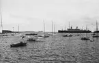Roddbåtar utanför F 2 Hägernäs, 1937. I bakgrunden syns flottiljområdet samt tre flygplan S 5.