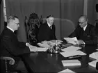 "Hushållningssällskapets vinterting i Upsala" - vice ordförande professor Flodkvist, ordförande landshövding Sigfrid Linnér och sekreterare Nystedt, Uppsala slott, Uppsala december 1942