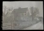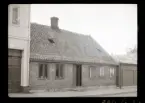 1950. Frankrike. Stenhus ovanför en mur med kruka