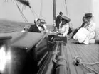 Utfärd till Björnö. Stående fr v: Harald Wulff, Harald Jeansson, Vivan Johansson, Sven Rosman, Edith Ericsson, Waldemar Thomson, Kerstin Angelin, Gusaf Holmquist, Dagmar Rodhe, Gustaf Geijer, Elna Larsson, Gusaf Johansson, Ingegerd Samuelsson, Olle Wåhlin. Sittande fr v: Helge Bruun, Signe Bruun, Eivor le Grand, Anna Kopman, Elin Haglund, Gunnar Sahlberg, Greta Wåhlin, Erik Kreüger, AnnaRosberg, Carl Haglund, Victor Gullbrandsson, Pelle Ödman.
