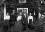 Konfirmation (?), barn och en präst. Kyrkobyggnad i bakgrunden.