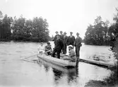 Svartå Herrgård 28 juli 1966 I en sjö utanför Svartå Herrgård sitter två herrar klädda i kostymer, skjortor och slipsar. Den ene ror och den andre fiskar med ett spö i sina händer. Herrgården syns i bakgrunden.