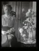 Porträtt av kvinnlig student med fång blommor i famnen.