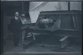 Affisch ur Tekniska museets samlingar. Reklam för utställningen "Sverige bygger" på Tekniska museet.