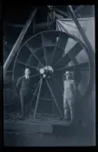 Affisch ur Tekniska museets samlingar. Reklam för utställningen "Människan och tekniken" på Tekniska museet.