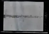 Fotografens anteckning: ”1. Från N. P. Mikaelssons hemman av nr. 2 Övre Lansjärv, nordligast i byn: utsikt mot N.V. uppför Skrövälven vid dess utlopp i Övre lansjärvsjön. Vårhögvatten, lösflottning. Foto 1924."