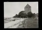 Fotografens anteckning på negativet "Tynningö 05" Midsommarstång reses.