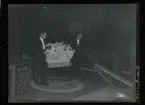 1717 I Svenska konsulatet Aten. En man vid sitt skrivbord, varpå det står en svensk flagga.