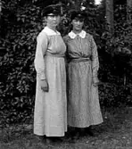 EN KVINNA STÅENDE I TRÄDGÅRDEN.