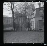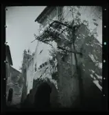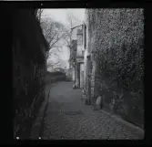 539 Söder. En man tittar upp från korsningen Götgatan/Noe Arksgränden på hus från olika tider.