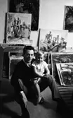 Lungkliniken, Nappivalen, Grekiskt handarbete 11 december 1967 En modevisning inne i ett rum i ett hus. En fotomodell klädd i en svart klänning med ett vitt mönster på kragen, runt midjan och nedtill på klänningskanten. Klänningen är ett grekiskt handarbete. Modellen bär även svarta lågklackade pumps och står mitt i en dörröppning. Hon har håret uppsatt i pippilottor. Personer som betraktar henne syns i bakgrunden.