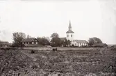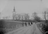 Bjärklunda kyrka = Härlunda kyrka. Bjärka och Härlunda sn sammanslagna fr.o.m. 1989 till Bjärkelunda församling. Kyrkan är belägen i Härlunda sn. Vid landsvägen Skara-Falköping, vintern 1893. Plåten spräckt i ena hörnet.