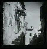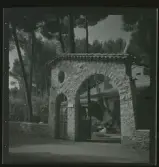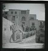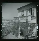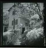 Kvistrum, Småland. Trädgårdssalongen, putsad träbyggnad. Mot sjösidan en hög murad terass.