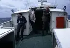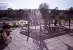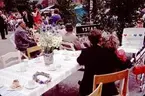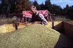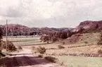 Män, kvinnor och barn sittande på en vagn dragen av två hästar på vägen söderut mot Gustafsberg, Uddevalla