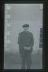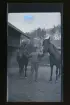 "Oscar Persson, kördräng, Mo Fogelstad." En man håller två hästar.
