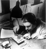 "En brudkrona blir till". Från utställningen "Falköping i bild" 1952.