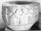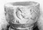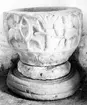 Götene sn. Restaurering av kyrkan, fundament till dopfunten i långhusets V del, vid västingången.