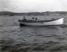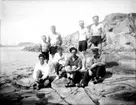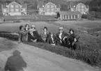 "Med det finaste porslin är det dukat med vit duk i gröngräset för Ulla-Britt, Arne och Linnea Blank, Signild Lindahl, Karin Nygren, Hjo, kusin till Ulla och Arne."
