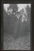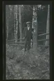 Stens Emma Juliana Eriksson (1895-1990) som nioårig flicka med två kalvar på Ärtåsens fäbodar, Ore socken i Dalarna, 1904. Som vuxen flyttade Emma till USA och drev restaurang under 10 år, men återvände senare för att rädda sin fars lantbruk från konkurs. Hon blev en aktiv fäbodbrukare, som hade kreatur tills hon blev 90 år.