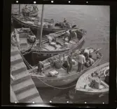 1717/K Istanbul allmänt. Gatuförsäljare. En man säljer frukter på kajen. Roddbåtar på vattnet.
