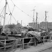 Skrivet på baksidan: Halland, Viske hd, Värö sn, Båtfjorden. Garnen kastas iland för att köras till räckan.