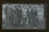 "Vid Väsby" Porträtt av ett sällskap, vid en stenmur. Ivar och Frida Fredriksson till vänster.