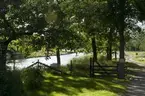 Rödesund, kanaldelen. Till vänster ses det Palmqvistska magasinet och Idas stuga, till höger gamla brovaktarstugan och den nya som byggdes år 1897. Originalet ett vykort finns hos Greta Nordström, Söroset i Ransberg. Detta kortet tillhör Karl-Axel Hanssons album. Förstoring 27 x 40 cm.