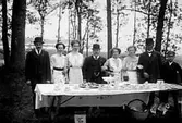 FEM MÄNNISKOR INNE PÅ ETT KAFÉ . T.V. VERNER CARLSSON OCH MANNEN T.H. GOTTHARD GUSTAFSSON.