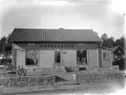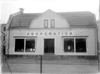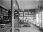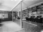 Hyllor och diskar fyllda med diverse varor. Fotografens anteckningar: Kooperativa i Mariedal 8 interiör.