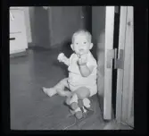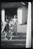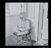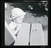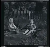 Barn leker i en hammock i trädgården till villa Solveden, Djursholm.