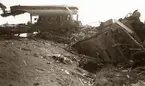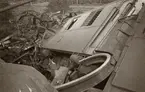 Glanshammar krock, 16 maj 1966 En bil ligger uppochnervänd på en väg. Den är illa tilltygad då den varit med om en krock. Lösa delar av den ligger spridda över vägen. Kring bilen står ett antal personer. Till vänster om den står två poiser samt ytterligare en man. Den ena polisen håller en avspärrningsstolpe med tillhörande rep i sin vänstra hand. Till höger om bilen står fem män och en kvinna. I bakgrunden till vänster står ytterligare en man och betraktar scenariot. or. Han går nedför en kort trappa utomhus.