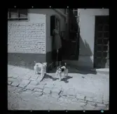 1717/K Istanbul allmänt. Flicka klappar hund.