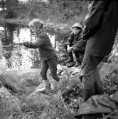 Nyingarna (scouterna) från Kållereds missionsförsamling är hemma hos Ann-Marie och Rune Karlsson i Labacka år 2004. I grå pälsväst: Berit Thalenius (1935-2016 ) som engagerar barnen.