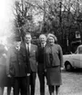 "Niittaho-Jussi" Johannes Johansson 90 år, Niittaho-Jussisällskapets ordf. docent Jarl Louhija, sekreterare jäg.mäst Urho Juha + fru. Apu.lektis red Rauri Vornanen.