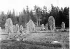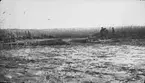 Skörd med hästdragen jordbruksmaskin, sannolikt Josef Ärnströms bror Albert Ärnström, Sonbo, Films socken, Uppland