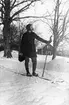 Syskonen Ragnar, Viktor och Ragnhild Nyman, Elsa Lundin, Sixtus Janson samt möjligen Elwira Freding och Klara Olsson på skidutflykt, Uppsala 1909