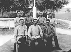 Familjen Ivar Stridh framför verkstad och bostad