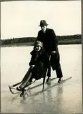 Stenhuggare Johansson med pojke på spark. Bilden tagen den 2 januari 1919.
