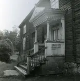 Äldre träbebyggelse Exteriör, fasad mot gård med staket på stengrund