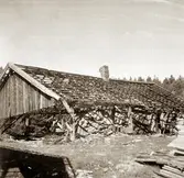 Tegelbruket i Hagaström byggt 1886-88. Vy mot åladan och motorrummet. Ugnen bakom fotografens rygg. 1981 före rivningen.