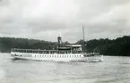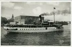 Foto när fartyget skall angöra Vaxholm, i bakgrunden bakom aktern syns Ramsösund. fotodatum 1953-02-22