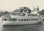 Passagerarfartygen EXPRESS I och NORRSKÄR av Vaxholm vid bryggan i Sandhamn.