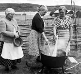 Framför gärdsgården står från vänster Arvid Jansson, Gustav Blom, Helmer Johansson och Johan Åberg, samtliga Västerbo.