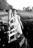 Flickan på gärdesgården är okänd. Foto 2 maj - 10 juni 1917.