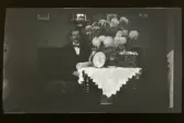 Karlavägen. Man pumpar luft i bilhjul. I bakgrunden Karlavägen 33.