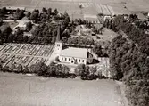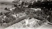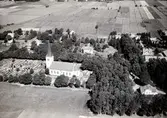 Flygfoto över Tunboskolan och Kolbäcks kyrka, Kolbäck.