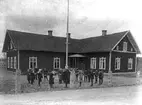 Folksamling framför hus på Gärdhemsgatan i Tibro