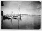 Enligt text på fotots baksida: "Slussen, Orust 1950-talet taget från N. Pensionatet och i förgr. Sigge vi´Rönns fiskebåt".