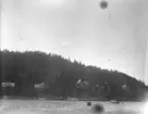 Enligt text på fotots baksida: "Slussen, Orust. I bakgrunden Runnsberget med en kutter? i Wannen. Den tillhörde några bröder fr Miggelin. Byggnaden är konservfabrik (1928-1932) Numera (1992) Slussen Pensionat".